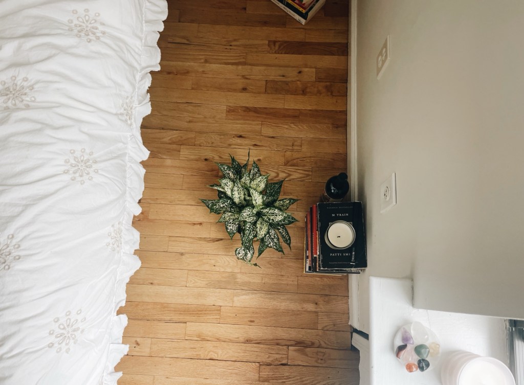 I take a shower and cook dinner to the sound of jazz, retreating into my bedroom to light a candle and read for the night.